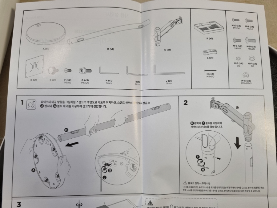 삼텐바이미는 설명서 대로 간편하게 거치대 조립 및 모니터 설치가 가능했구요.