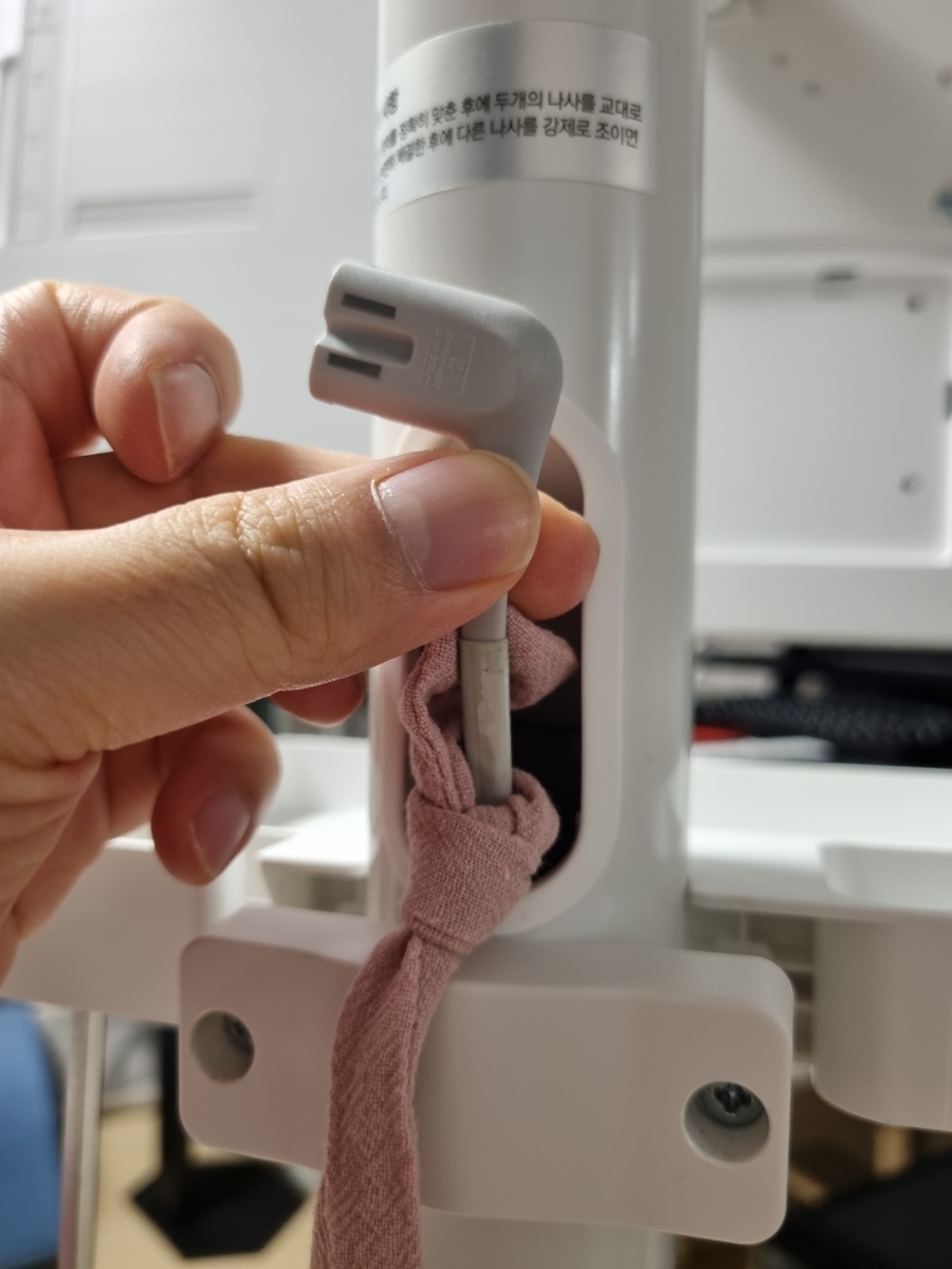 장력조절도 간편하고 삼탠바이미 기둥에 모니터 전원선을 숨길 수 있어서
