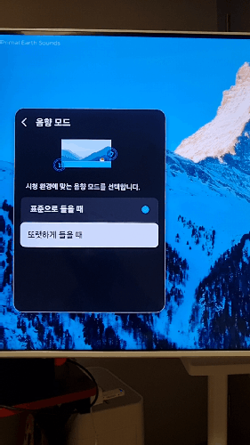 음향모드 설정으로 또렷하게 듣거나 표준음성으로 듣기가 가능했어요.