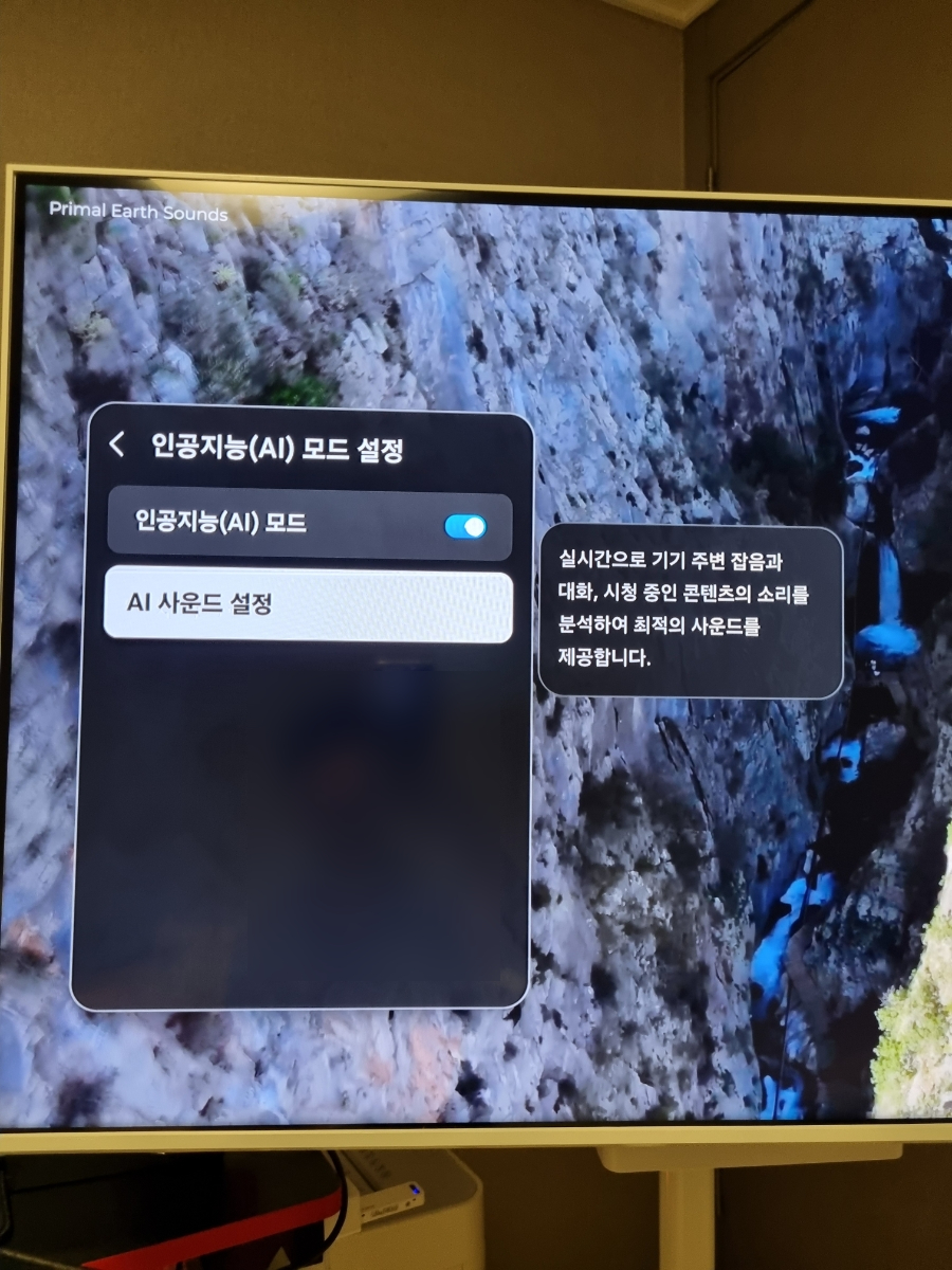 AI사운드 설정으로 주변소리 분석을 통한 최적의 사운드도 제공해주었어요.