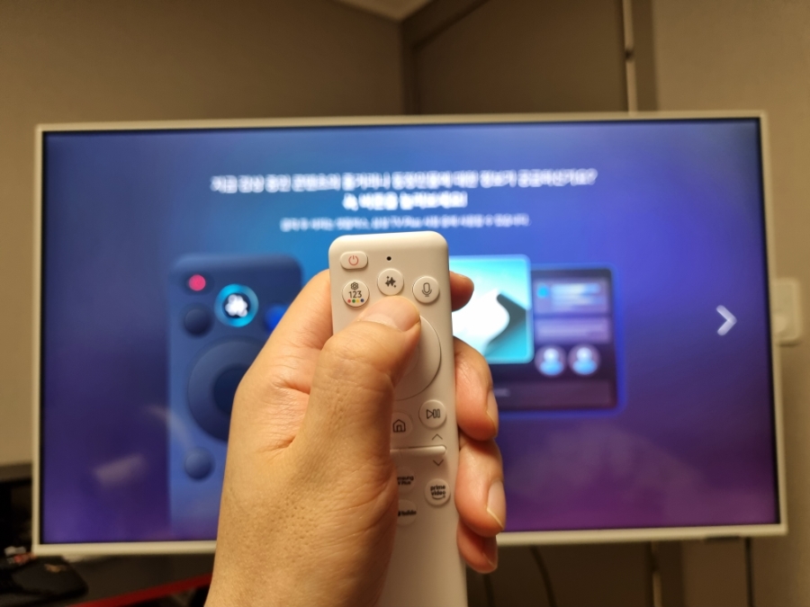 리모컨을 통해 넷플릭스, 유튜브, 삼성TVPLUS, 프라임비디오를 다이렉트로 연결할 수 있어서