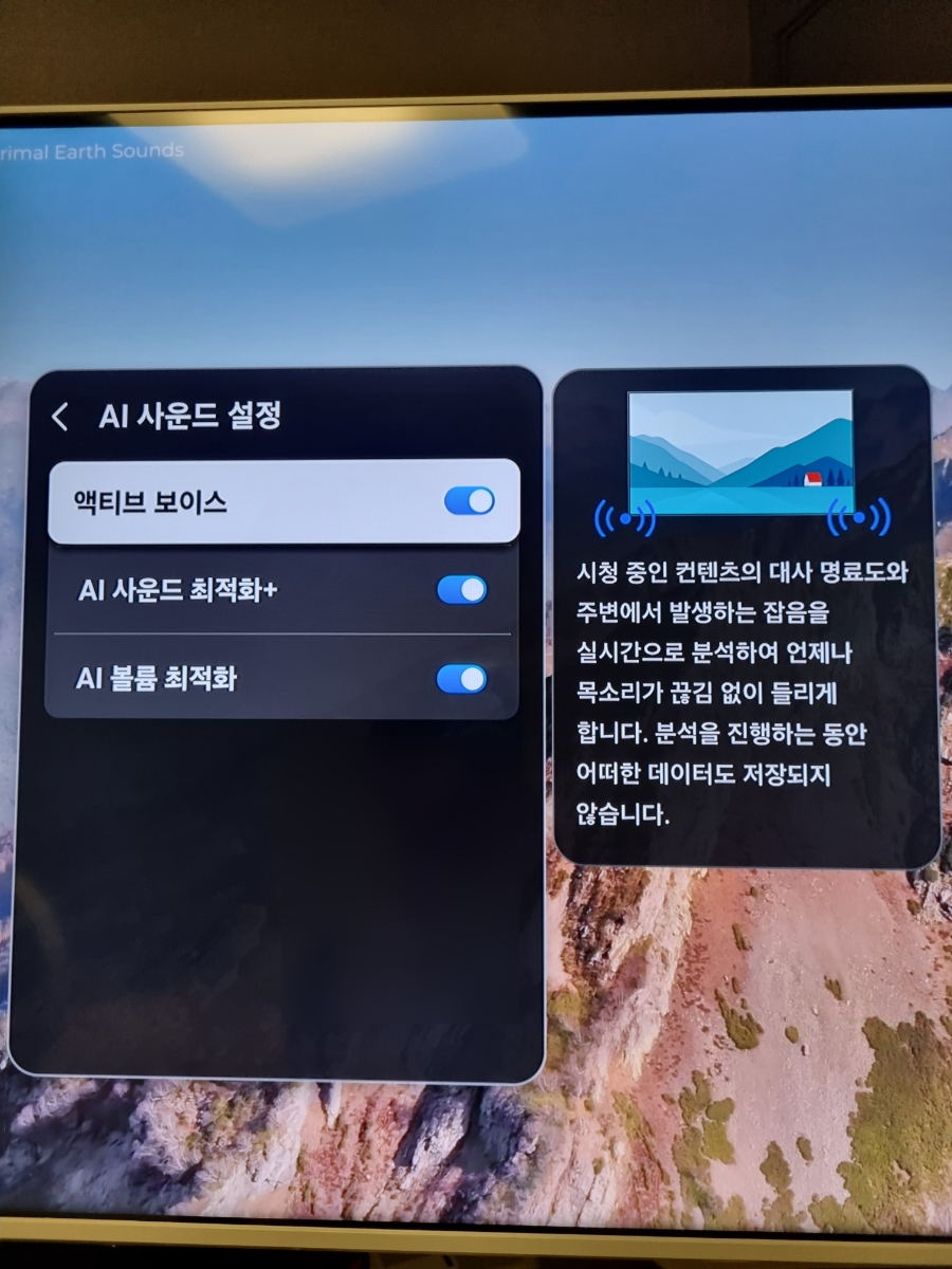 액티브 보이스, AI사운드 최적화+, AI볼륨 최적화 설정도 가능한데요.