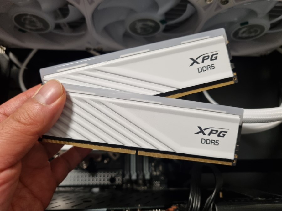 화이트 DDR5 메모리여서 흰색메인보드와 잘어울리겠는데요.
