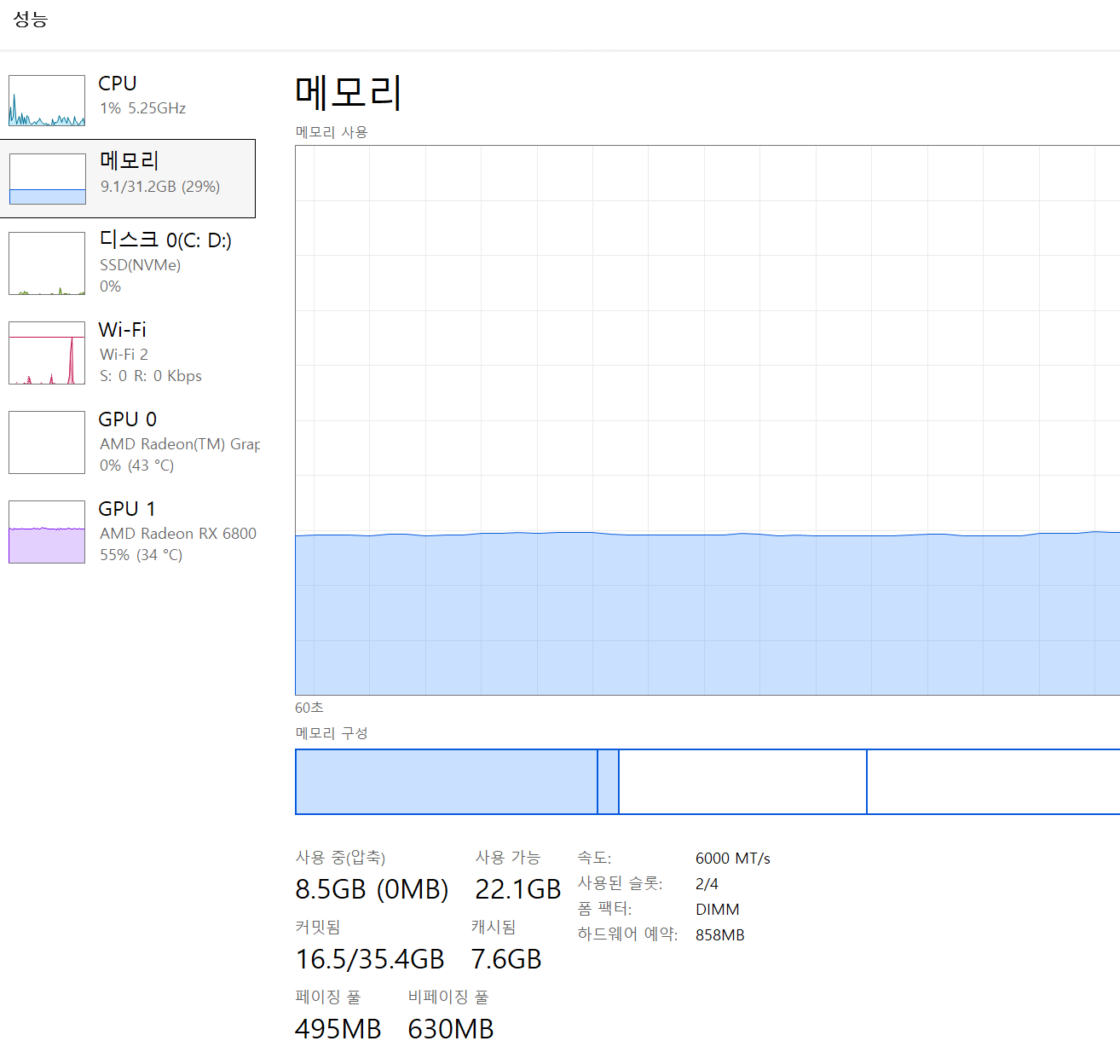 AMD Ryzen 5 9600X 사용으로 6000Mhz를 온전하게 사용할 수 있네요.